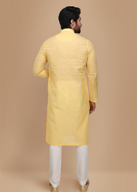 Product Item: Manyavar yellow kurta with store jacket