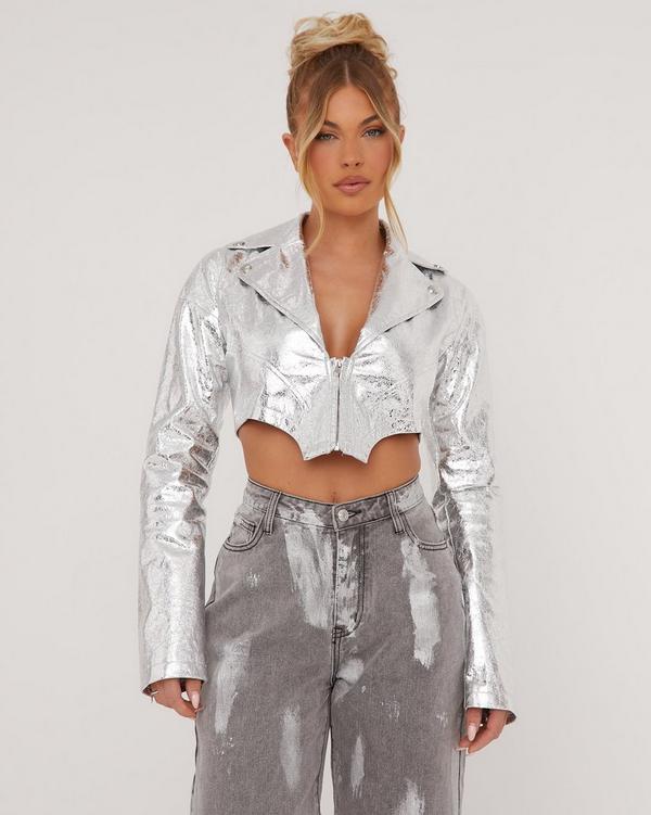 Silver store crop jacket