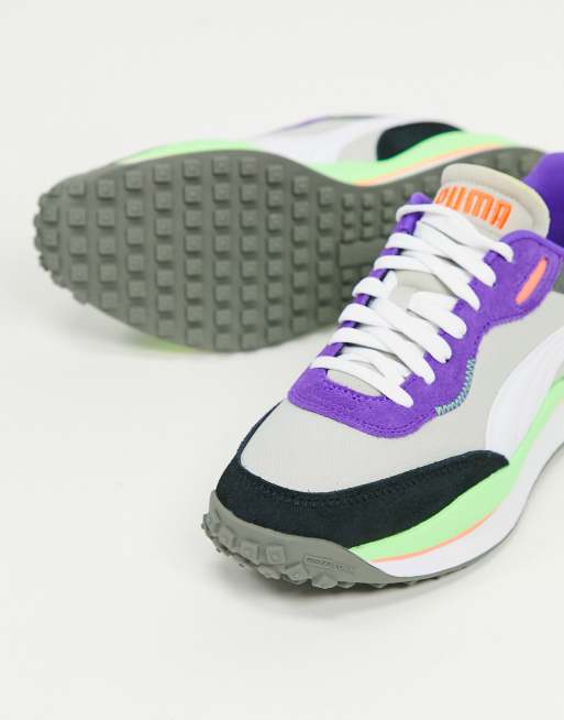 Product Item: Grey and store purple pumas