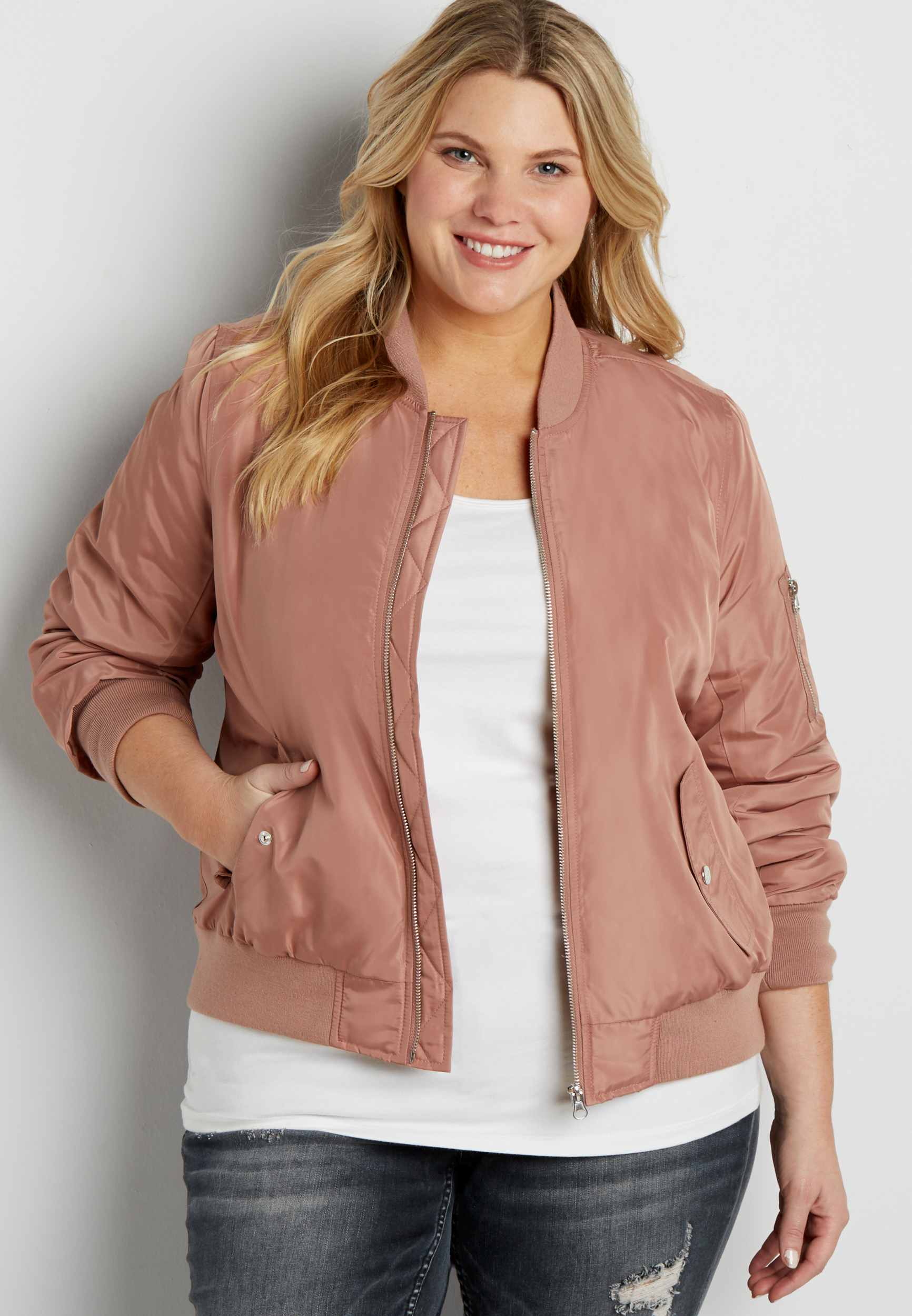 Plus size satin bomber store jacket